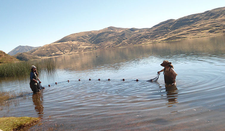Pesca con red de arrastre laguna Asnacocha © Silvia Valenzuela