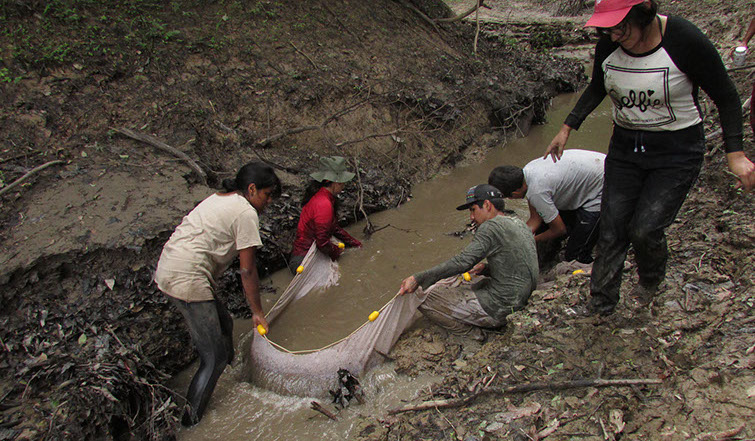 Pesca con red de arrastre lago Huitoto © Silvia Valenzuela